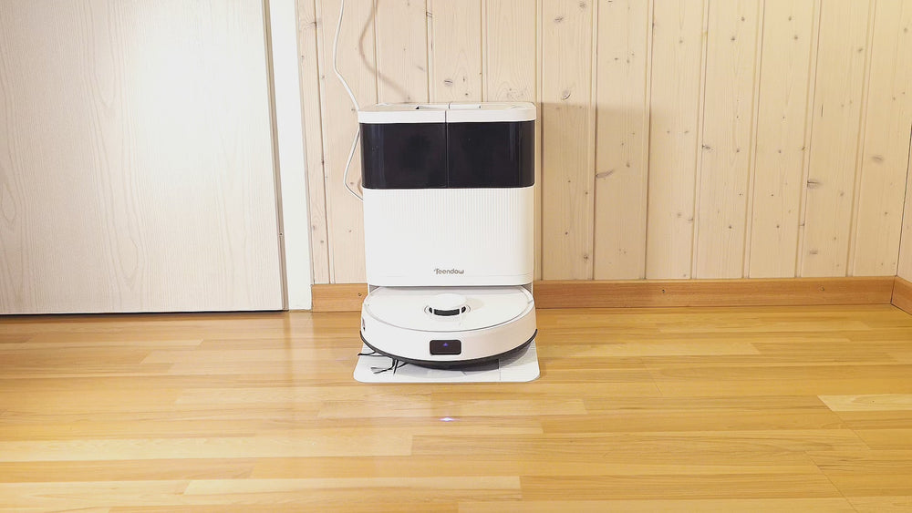 Du behøver ikke engang være hjemme. Robotten starter, støvsuger og vasker gulvet automatisk – og vender selv tilbage til opladning.